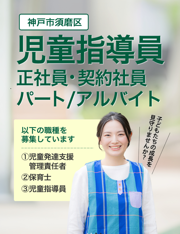 | 仕事内容 | 障がいのある児童の放課後を一緒に過ごし、遊びや宿題、発達支援サポートを行っていただきます ※土曜日・祝日・長期学校休業(夏休み等)は終日児童を受け入れます |